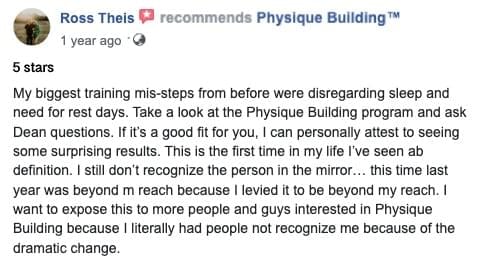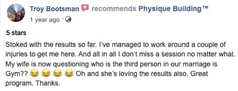 You're Also Getting Exclusive Access To Join The Physique Building Facebook Group - I'll walk you through the exact cutting-edge ways to making gains while shredding unwanted flab for good