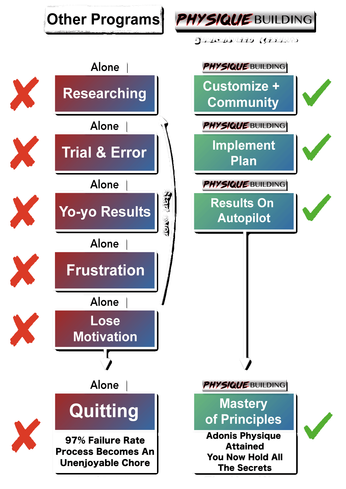 Step 1 - Master the Physique Building Philosophy (I'm going to give you everything I know on sculpting lean muscle and shredding flab)...